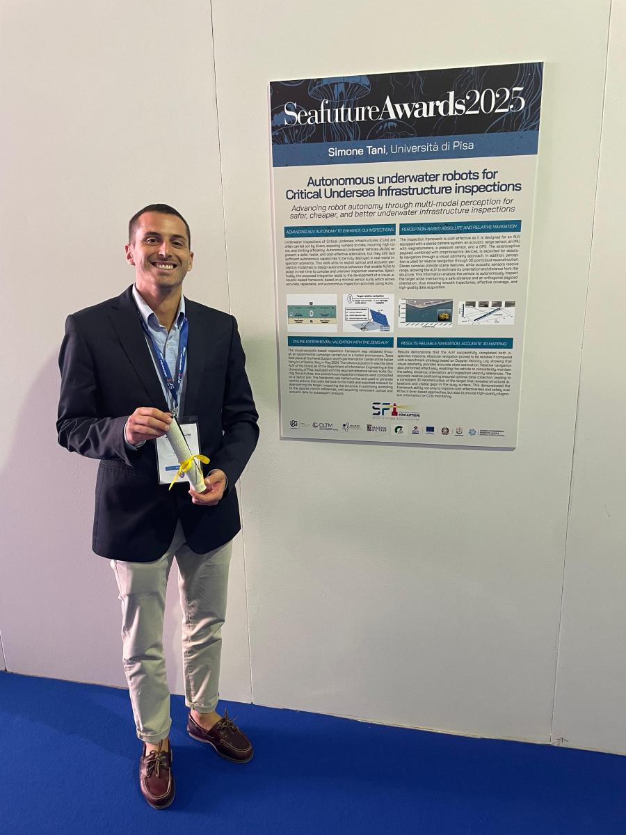 Sono stati selezionati sette finalisti per il premio di dottorato, tra cui Simone Tani che ha conseguito il dottorato al DII, ed era in concorso con la tesi "Autonomy of underwater robots in environmental monitoring and infrastructures inspection by exploiting exteroceptive sensors", che presenta un framework per l'uso di Veicoli Subacquei Autonomi (AUV) per l'ispezione di infrastrutture marittime critiche.