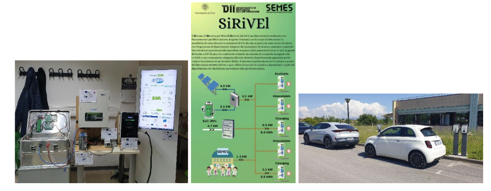 Electric vehicles and distributed renewable energy generation pose significant challenges to existing power grid infrastructures. For this reason, novel smart grid architectures and innovative energy flow management systems are being studied. Within this research area, our laboratory has implemented an experimental Electric Vehicle Charging Facility for the users of the Department of Information Engineering (SiRiVEl – Sistema Ricarica Veicoli Elettrici). The facility primarily targets the home-to-work charging needs of department users and is equipped with five Level 2 AC chargers, a 6.6 kWp photovoltaic system, and 10 kWh of energy storage. The SiRiVEl facility enables us to investigate advanced recharging strategies and energy management approaches by complementing theoretical and simulation-based studies with real- world testing and experimental validation.