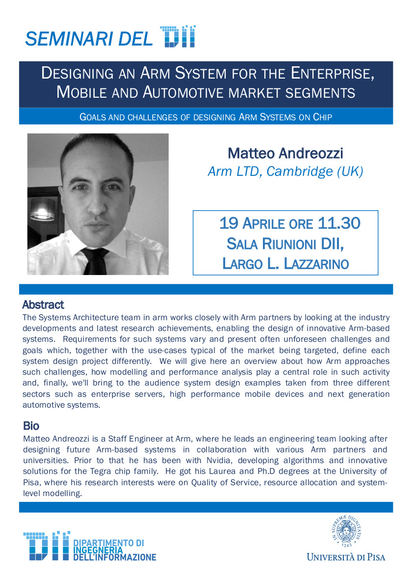 [Seminario] Designing an Arm System for the Enterprise, Mobile and Automotive market segments, April 19, 2018
